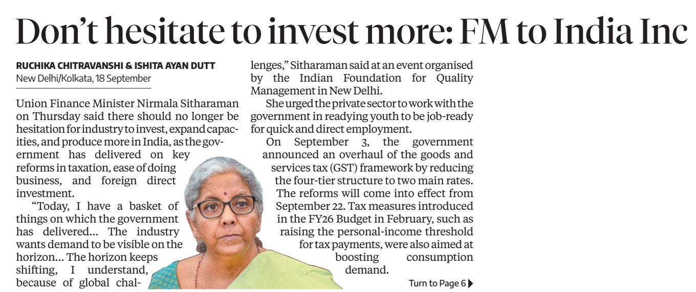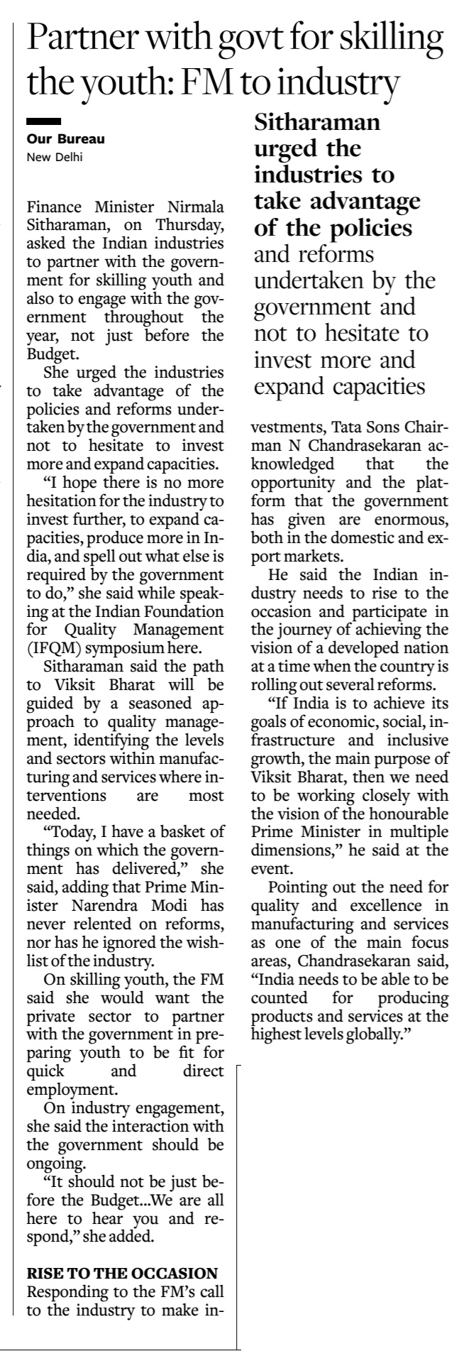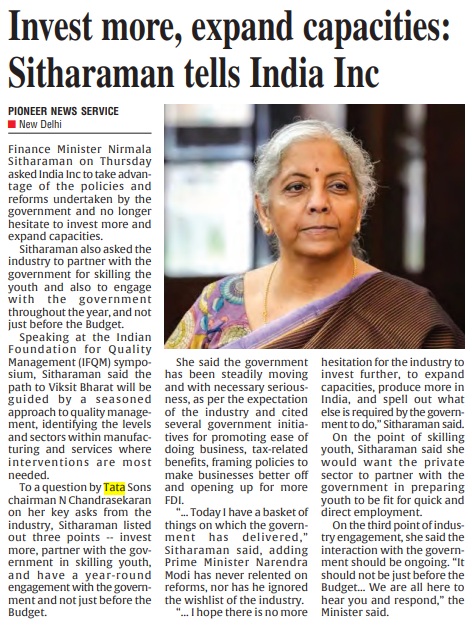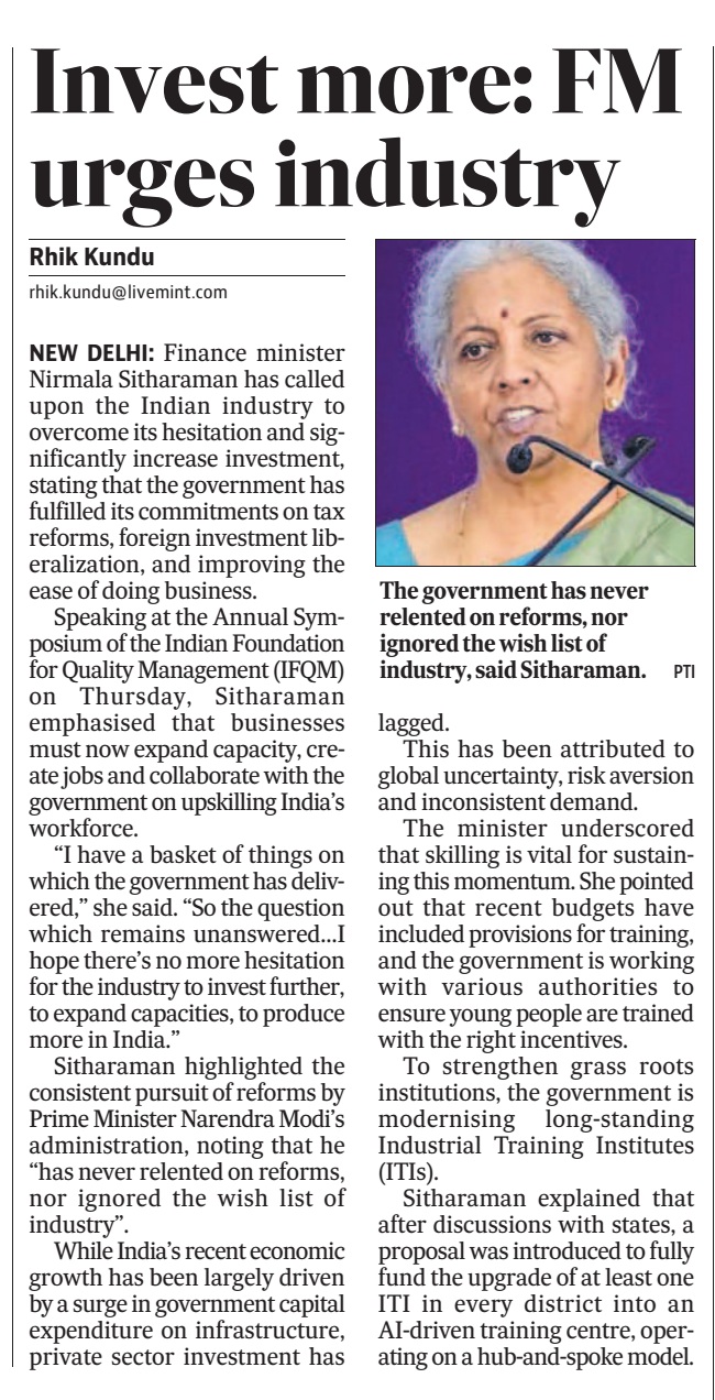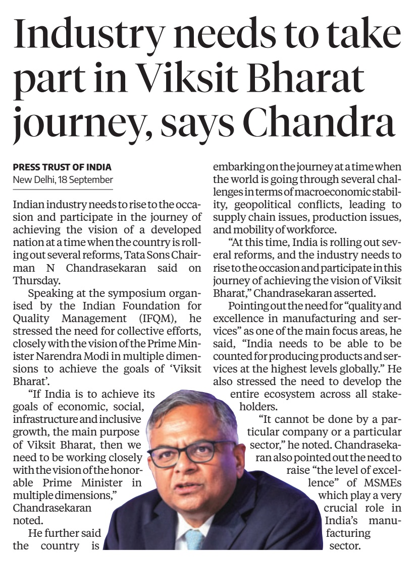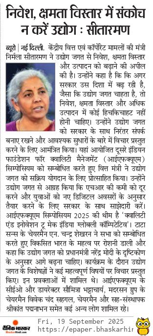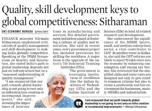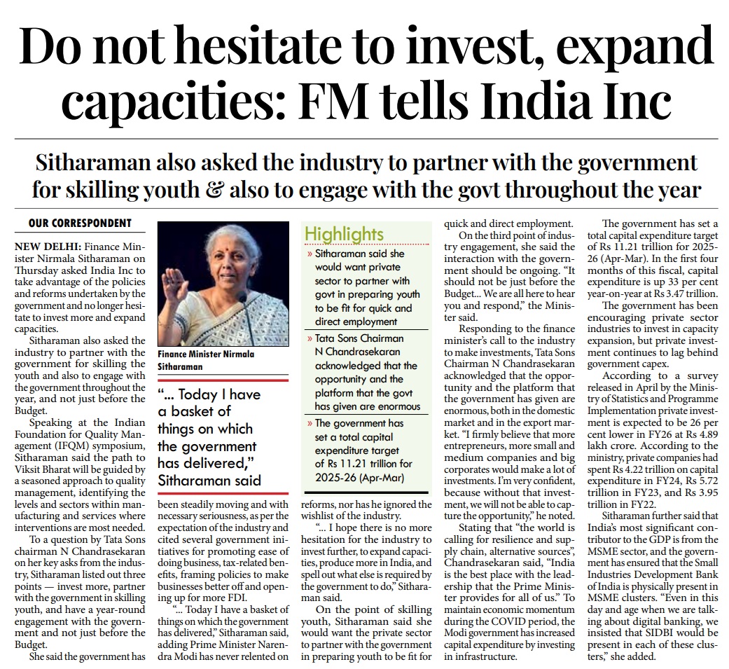 The two-day IFQM Symposium in Delhi successfully concluded on Friday. The event brought together CEOs, CXOs, academicians, and students, and was inaugurated by Smt. Nirmala Sitharaman, Hon’ble Minister for Finance and Corporate Affairs, Government of India. In her address, she emphasized the vital role of quality in business processes as India advances toward becoming a global economic powerhouse.