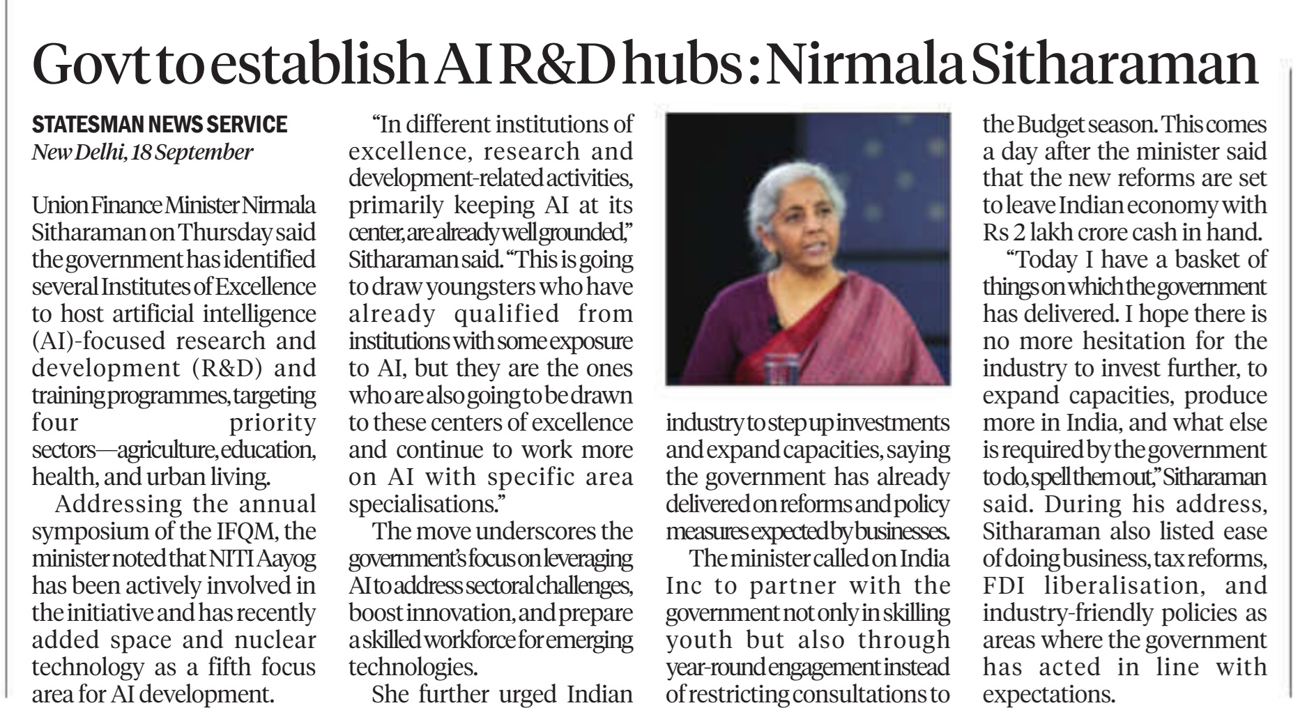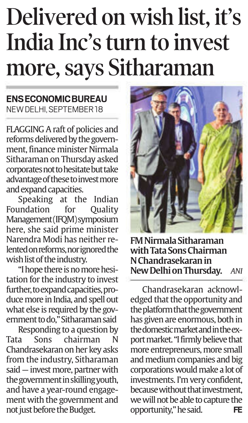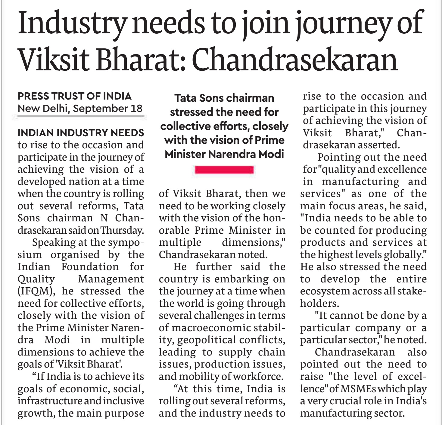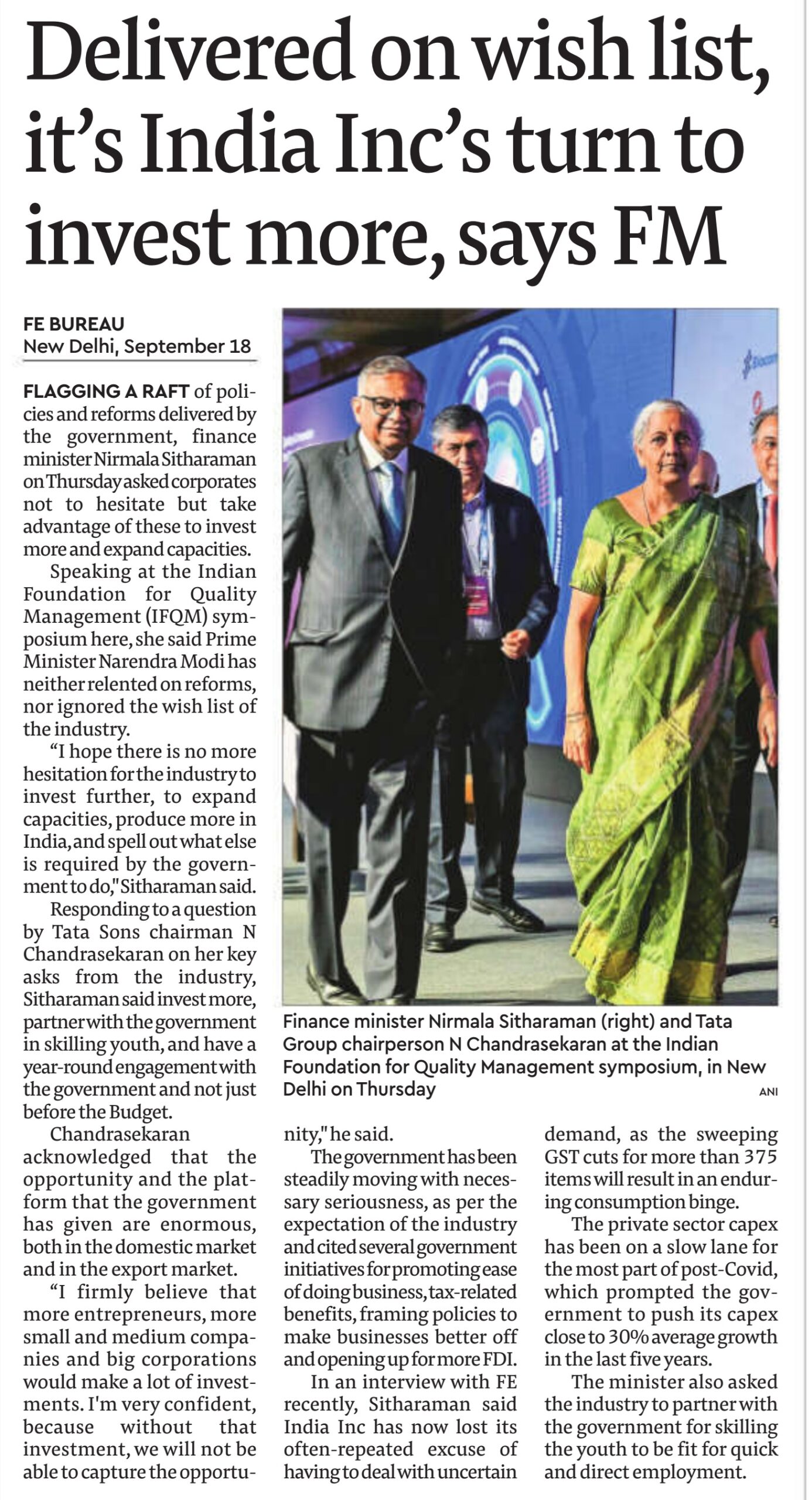The two-day IFQM Symposium in Delhi successfully concluded on Friday. The event brought together CEOs, CXOs, academicians, and students, and was inaugurated by Smt. Nirmala Sitharaman, Hon’ble Minister for Finance and Corporate Affairs, Government of India. In her address, she emphasized the vital role of quality in business processes as India advances toward becoming a global economic powerhouse.